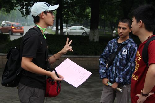 早上8:30,新生定向越野赛在东门、西门、南门同时开始,参赛小组依次出发。有的小组比赛刚一开始便径直奔向预设定的目标地点;有的小组比赛开始后还在商议目标地点;有的小组比赛开始后便一路狂奔;有的小组比赛开始后不急不躁,谋定而后动,设计好路线方才出发。比赛进行不到一半,很多同学早已是汗流浃背,但做游戏的热情却丝毫未减,比赛在欢乐的气氛中继续进行。上午10点,随着最后一组同学携手抵达终点,比赛结束。比赛全程,无一名同学放弃、无一例意外发生、无一个队员掉队,同学们相互鼓励、相互竞争,在鼓励中前行、在竞争中成长。