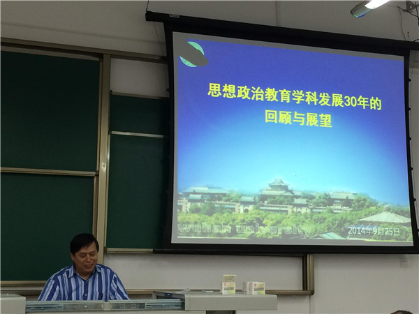 首先骆郁廷教授回顾了思想政治教育学科从创建阶段、发展阶段到繁荣阶段的发展历程。并根据自身经历,深情回忆了他在武汉大学为创建发展思想政治教育学科工作奋斗的往昔岁月,展示了30年来思想政治教育学科从半独立走向独立、由非重点走向重点学科、由低层次走向高层次取得的重要进展和成绩。通过对历史的回顾,总结了思想政治教育学科发展的四点成就:一是思想政治教育学科体系逐步完善,二是人才培养机制日趋优化,三是队伍建设不断加强,四是学科支撑日益强化。并且指出,思想政治教育学科必须坚持马克思主义为指导,坚持政治导向为核心,坚持实践发展为依托的三点重要经验。接下来,骆教授介绍了思想政治教育学科发展趋势,分别从借鉴与自主、传承与创新、分化与整合、内涵和外延、共性和特色五个方面进行了讲述,风趣幽默的语言让在场的师生受益匪浅。讲座最后,骆教授还为同学们答疑解惑,耐心而生动的解释,赢得了在场同学们的多次掌声。