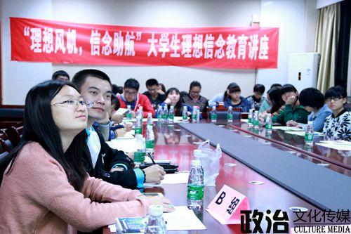 此次理想信念教育活动正值十八届四中全会召开之际,会议提出全面推进依法治国,总目标是建设中国特色社会主义法制体系,建设社会主义法治国家。学院为了贯彻落实会议精神,专门组织了此次教育活动宣讲法治精神,使同学们了解国家大政方针,做一个合格的“专业人”。