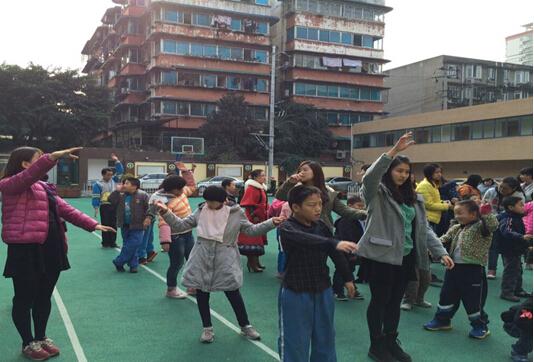 最后是大课间活动,也是孩子们一天中最期待的时光。志愿者跟着孩子们一起做课间操,为一天的辛劳做放松。
