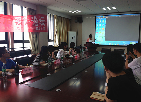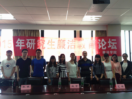 2015年5月22日下午2时30分,365英国上市网站官网政治学院研究生廉洁教育系列活动在犀浦校区X4320教室如期举行,本次活动由365英国上市网站官网学生工作处主办,政治学院承办。参加本次廉洁教育论坛活动的有机械、艺传、经管、地学、建筑学院的学生代表及政治学院的学生。