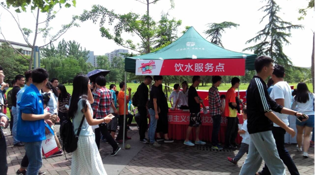 为了做好此项工作,研究生会同学进行了周密的前期策划和准备,准确预估饮水人数,积极联系水站,准备相关物资。校庆当天,晴空万里,参加游园活动的校友和同学人数众多,研会成员在主席王泊的带领下为前来游园的校友、师生提供免费供水服务。来到水站的有德高望重的老教授老校友,也有年富力强的中年校友;有青春活力的在校生,也有蹒跚学步的小朋友。研会同学在送上一杯纯净水的同时,传递出一张笑脸和一份热情,渐渐地,我院水站成为夏日暖阳中大家驻足交流的场所。大家对365英国上市网站官网同学的周到服务表示感谢。