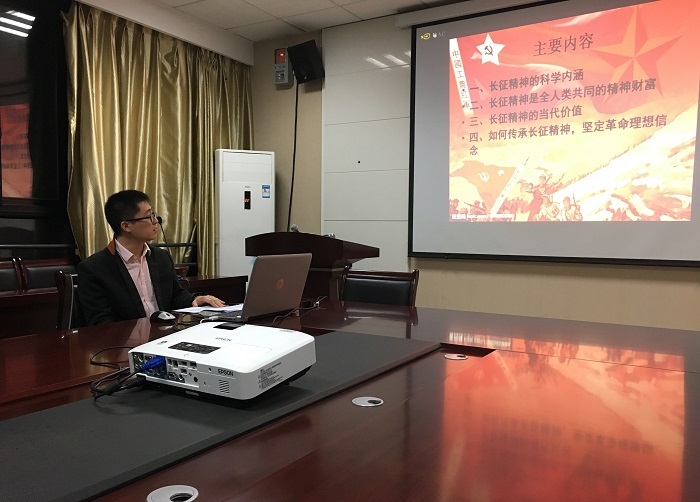 刘海鑫博士从“长征精神的内涵”、“长征精神是全人类共同的精神财富”、“长征精神的当代价值”以及“如何传承长征精神”四个方面向党员同志们深刻而全面地解读了习近平总书记在出席纪念红军长征胜利80周年大会时所作出的重要讲话。
