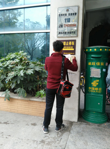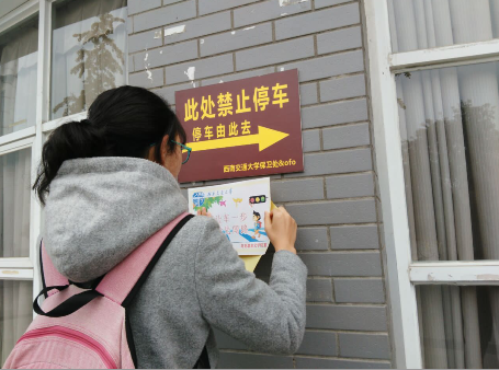 级本科同学在清晨的阳光中结伴来到了教学区,将早已打印好的“宁可让车一步,不可抢先闯路”宣传标语贴到了各个教学楼的醒目处。该标语可以很好地给过路的同学了起到提醒作用。