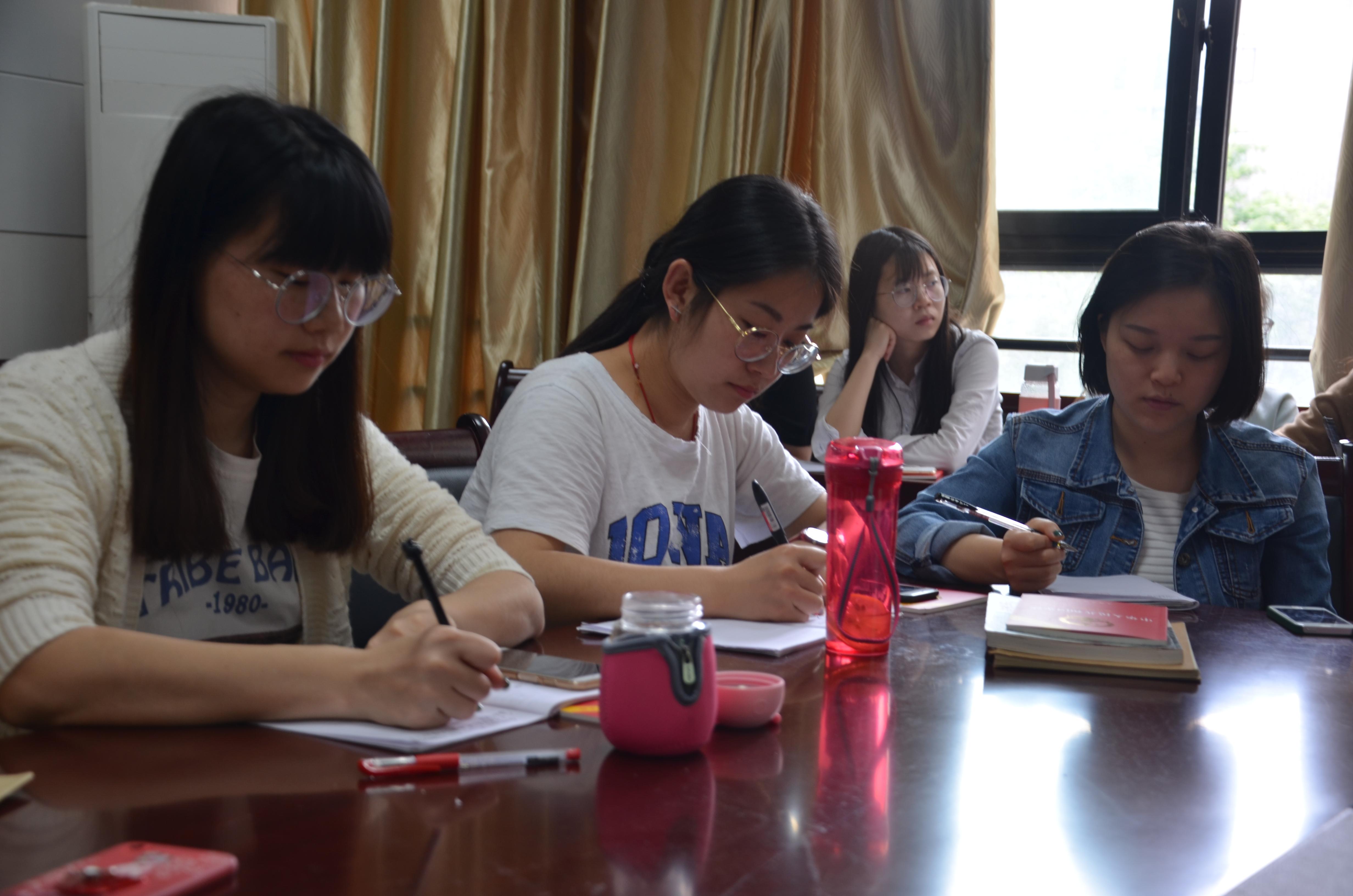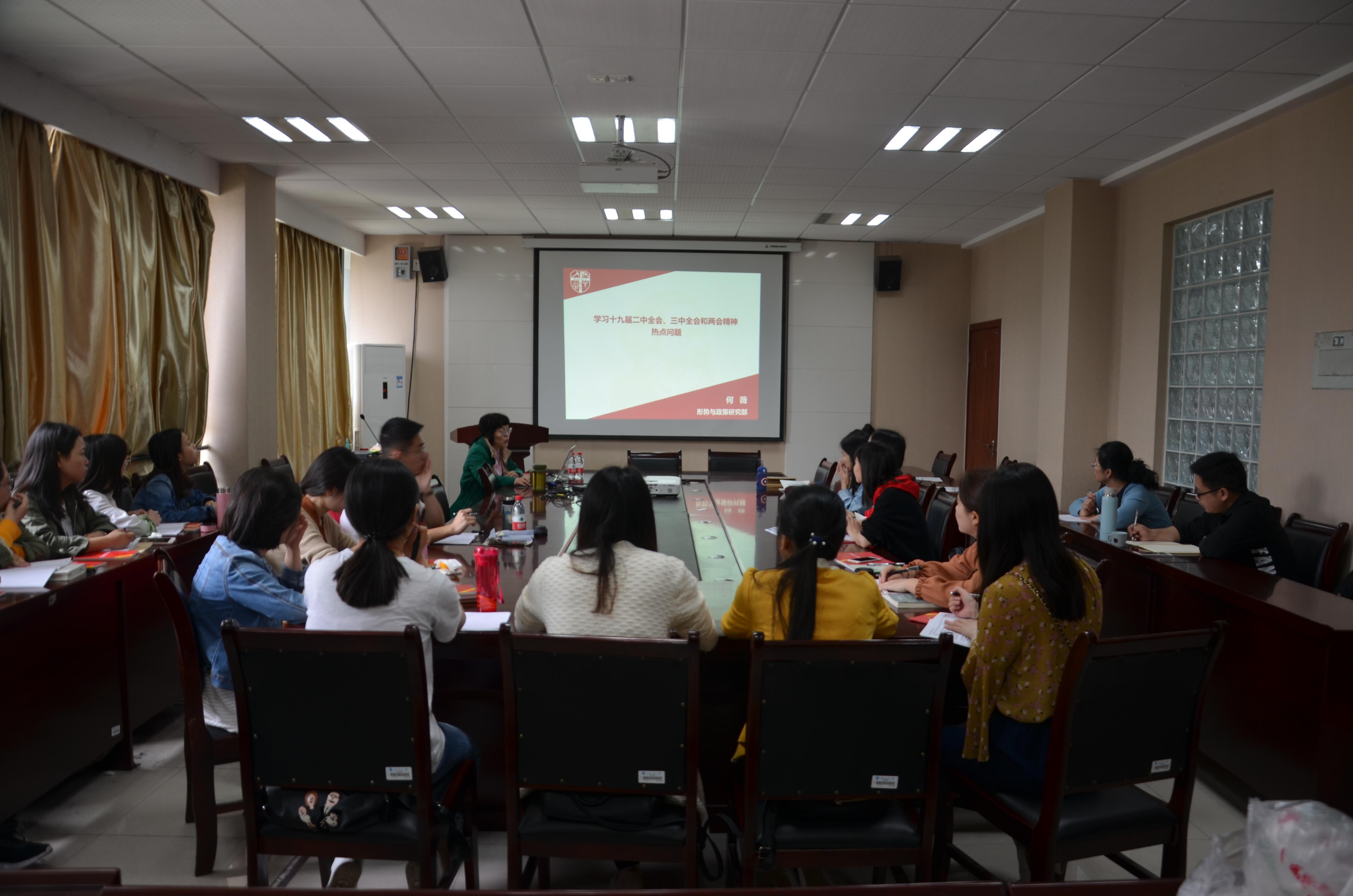 4月27日上午10:00,由学生工作部主办、365英国上市网站官网承办的研究生时政热点研读班在X4320室举办。特邀请365英国上市网站官网形势与政策教研部主任,副教授、硕士生导师何薇博士,以“学习党的十九届二中、三中全会精神、全国两会精神”为题进行解读,17级硕士生党支部全体成员参加,此次时政热点研读由党支部书记邓丽华主持。