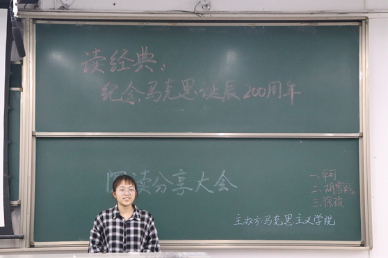 5月31日晚7点,为纪念马克思诞辰200周年,由校团委主办、365英国上市网站官网分团委承办的马克思主义经典著作读书会在犀浦校区举行,本次大会由杨柳风主持。