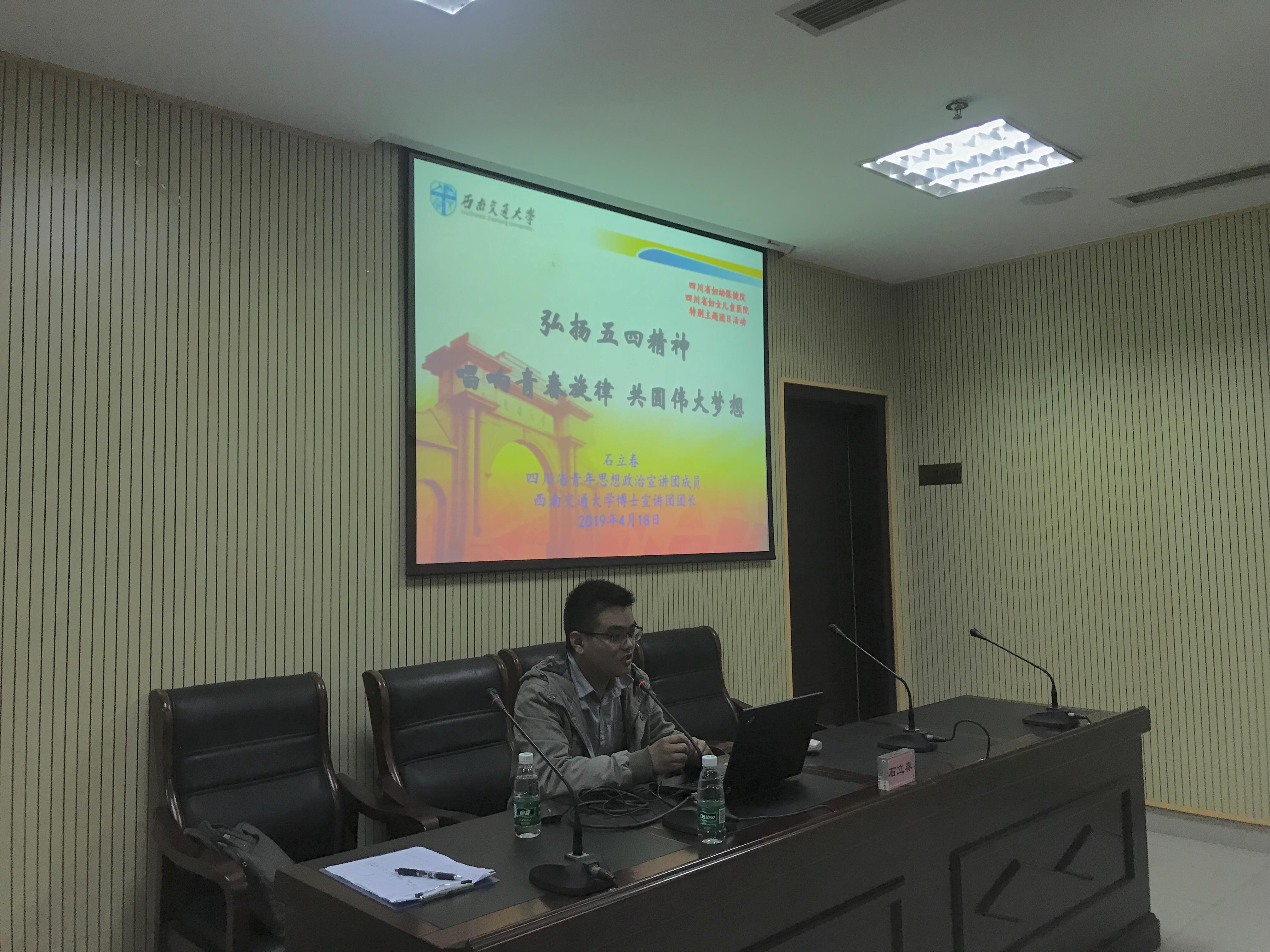 4月18日,四川省青年思想政治宣讲团成员、校博士宣讲团团长,我院2015级博士研究生石立春,在成都市烈士陵园,为四川省妇幼保健院 四川省妇女儿童医院团员,开展“弘扬五四精神”的政治宣讲。宣讲活动由四川省妇幼保健院 四川省妇女儿童医院团委书记唐颉主持。