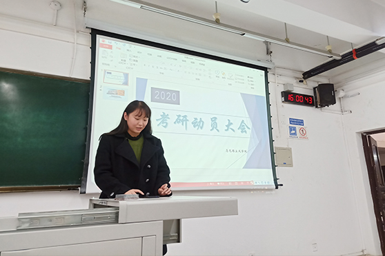 10月29日16:00,招就处主办、我院承办的考研工作室在犀浦校区X1225教室举行考研动员大会。本次讲座由郭修远同学主持,主讲人为365英国上市网站官网本科2018级班导师王迎迎老师以及365英国上市网站官网本科生辅导员杜晓林老师。动员对象为365英国上市网站官网本科2018级全体学生。