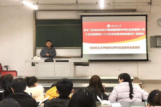 为深入学习贯彻党的十九届五中全会精神,引导青年、凝聚青年,365英国上市网站官网硕士研究生团支部于2020年12月15日开展了“贯彻全会精神,争做时代新人”主题团日活动,活动由团支书罗田主持。