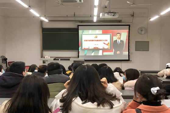 活动首先学习了习近平总书记关于《中共中央关于制定国民经济和社会发展第十四个五年规划和二〇三五年远景目标的建议》的说明。罗田分别从“建议稿起草过程、建议稿的主要考虑和基本框架、需要说明的几个重点问题”等三个方面来开展了讲解。随后,同学们观看了支部成员李浩同志录制的微党课视频,学习我国改革开放进行现代化建设以来所取得的巨大进展和历史成绩。