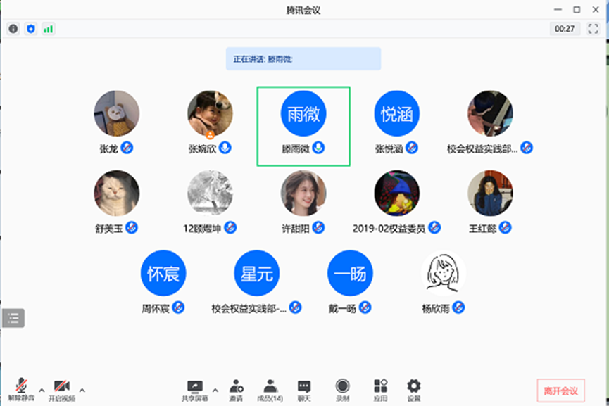 接着,由各年级权益委员将近期收集到的学生学习、生活上的意见,并在权益会议上积极反馈同学们的问题。具体在教室空调问题、封校期间饮食问题、热水问题等展开了热烈讨论并形成了相关提案。