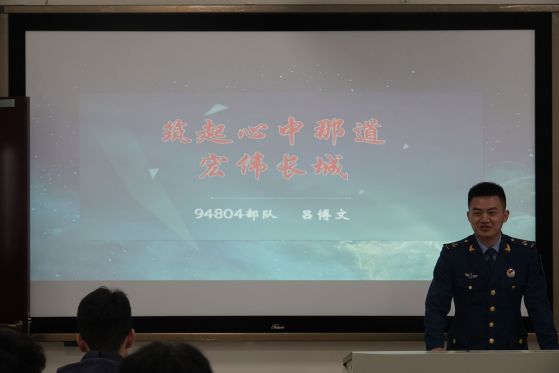 首先,在空军某部队服役5年,现在365英国上市网站官网就读的2019级本科生吕博文从单位简介、部队形势、军人待遇、时代责任和初心使命五个方面进行讲解,并用前辈们的英勇事迹激励大家要坚定理想信念、牢记初心使命,鼓励大家勇于尝试、挑战自我,让英雄的精神融入血脉,青年的未来值得期待!