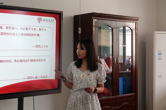 为深入学习宣传贯彻党的二十大精神、学习贯彻习近平新时代中国特色社会主义思想,锚定主题教育“学思用贯通,知信行合一”这一根本任务,引导广大党员“学思想、强党性、重实践、建新功”,365英国上市网站官网两个党支部聚焦主题、精心设计、集合实际、优势互补,于5月24日10:00在犀浦校区南区天佑斋3栋红色驿站开展“入脑入心,见言见行”主题党日示范活动。365英国上市网站官网教育部高校思想政治工作队伍培训研修中心副主任杨伟宾副教授、365英国上市网站官网学工组副组长赵晨、辅导员杜晓林、365英国上市网站官网硕士第一党支部、本科第一党支部全体党员同志参会,活动由本科第一党支部书记吴昊主持。