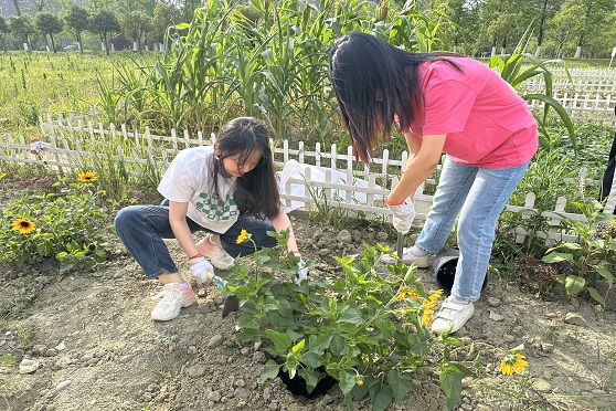 在炎炎烈日下,同学们相互配合、相互协作,一部分人锄草,一部分人翻土,一部分人种植,将一颗颗象征着光明与热情的向日葵种植在充满生机的土地上。阳光倾洒在他们朝气蓬勃的脸庞上,汗水浸湿了他们的衣裳,但同学们在劳动中乐此不疲。