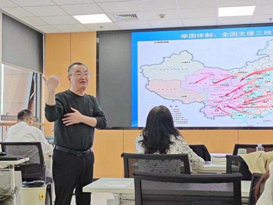 讲座最后,宜宾学院文学与音乐艺术学部周明长教授从三线建设的决策原因、三线铁路网建设以及西南三线建设等多方面,用通俗的语言和专业严谨的数据,极富激情向同学们讲述三线建设的艰苦奋斗史。