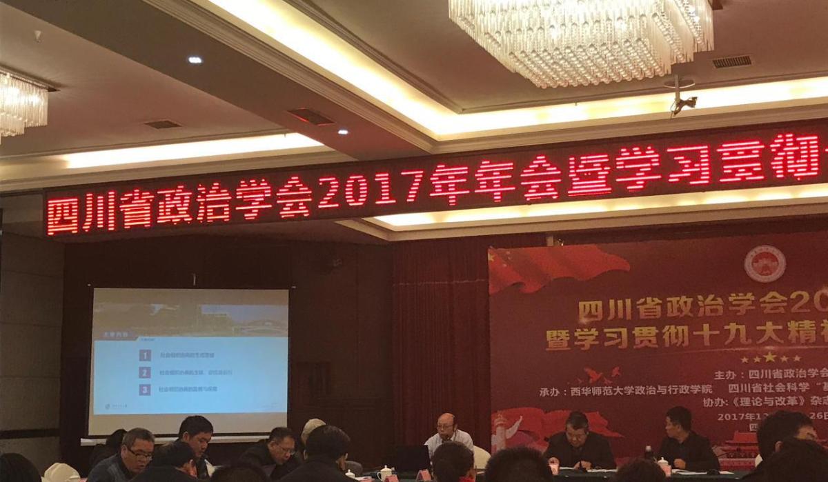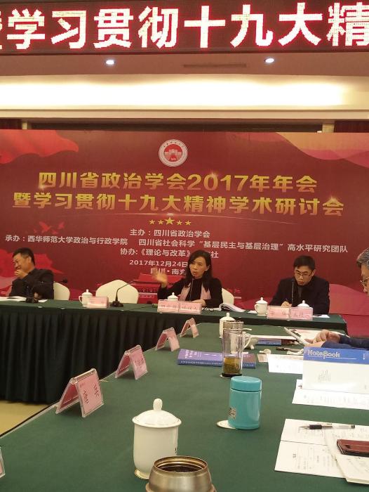 12月24-26日,365英国上市网站官网院长林伯海教授、田雪梅教授应邀出席“四川省政治学会2017年年会暨学习贯彻十九大精神学术研讨会”。该研讨会在四川南充召开,由四川省政治学会主办,西华师范大学政治与行政学院、四川省社会科学“基层民主与基层治理”高水平研究团队承办,《理论与改革》杂志社协办。四川省政治学会会长陈井安作了大会工作报告。中国政治学副会长、我国著名政治学家包心鉴教授、中国政治学会副会长、秘书长杨海娇教授、苏州大学沈荣华教授、南京审计大学金太军教授作为特邀嘉宾参会,并作了大会主题发言。本次大会分为四个单元,我院林伯海教授在第二单元:新时期治国理论与实践围绕《社会组织协商:新时代中国特色社会组织发展之路》作了主题发言。在本单元中我院田雪梅教授也作为评议人进行了深入、具体、详细的评析。大会气氛热烈,取得了不错的效果。