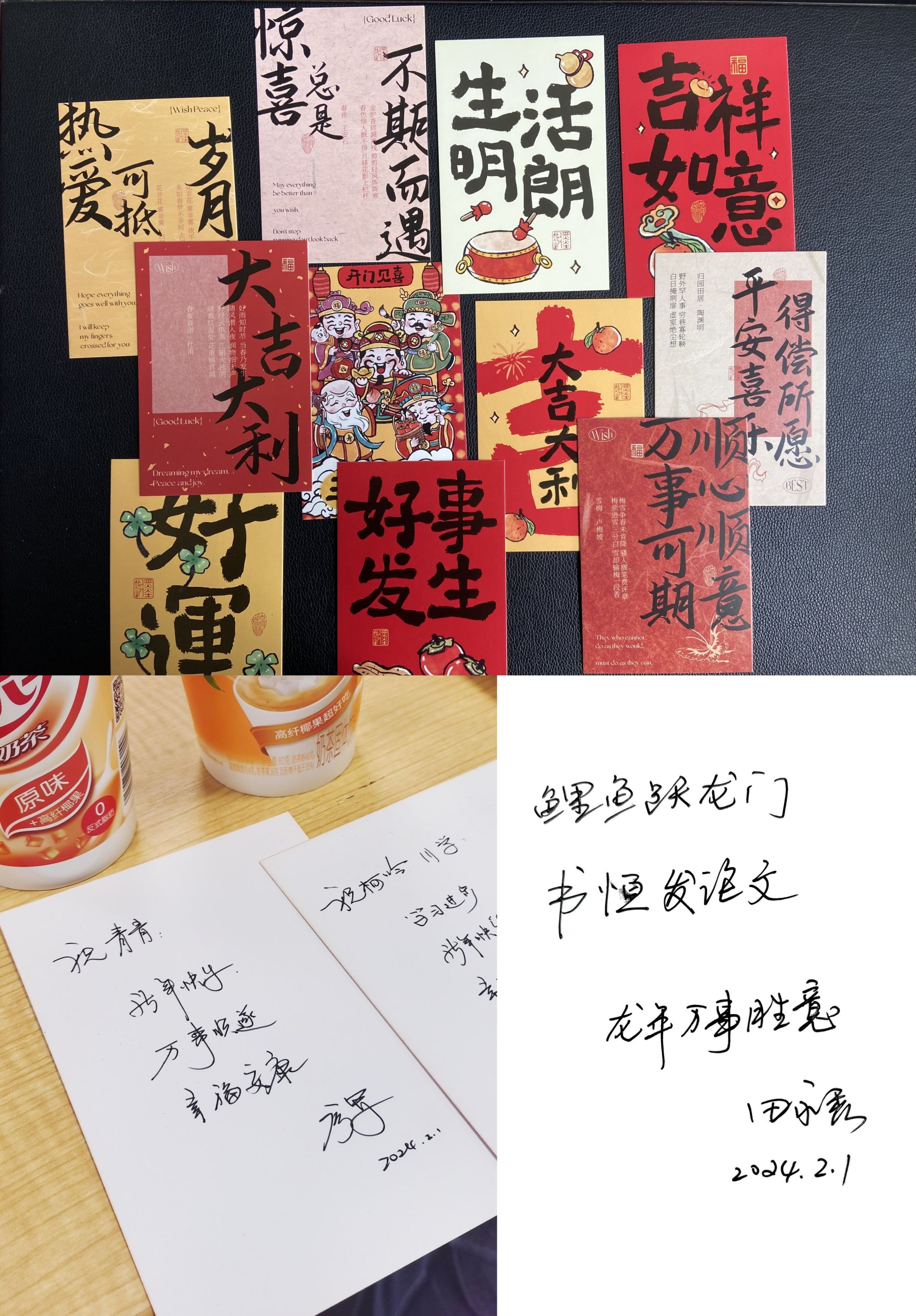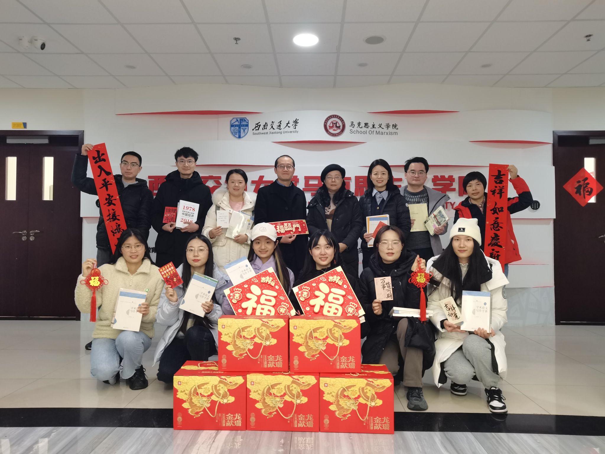 为营造温馨喜庆的新春氛围,学院为参加座谈会的同学们提前准备了新年大礼包,包含坚果、贺卡和图书。座谈会上,廖军、田永秀在贺卡上为每位参会同学写上新春祝福,送出美好祝愿。学院还为留校同学准备了春联、福字、生肖挂件等传统装饰品,供同学们装点寝室,感受浓浓的新春氛围。参会同学们纷纷表示,这样的交流会很有意义,学院的慰问和老师们的祝福非常暖心!超赞!