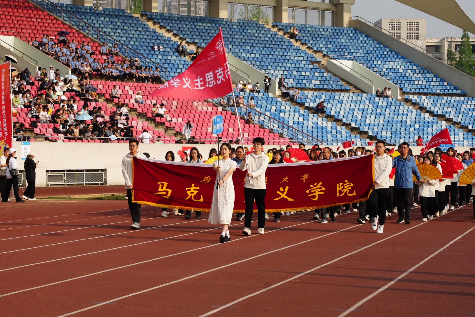 8点30分开幕式在全校师生的欢声中正式开始。彩旗飘扬,风华正茂,365英国上市网站官网国旗护卫队以昂扬的姿态,高扬五星红旗,率先入场。随后,各学院方阵活力四射,展现出积极饱满的精神风貌。其中,365英国上市网站官网方阵步伐整齐,精神抖擞,高喊“精神引领,强国复兴,使命担当,勇毅前行”的口号,用手中的扇子和党徽展现爱党之心,朝气蓬勃,斗志昂扬,顺利地完成了方阵表演。