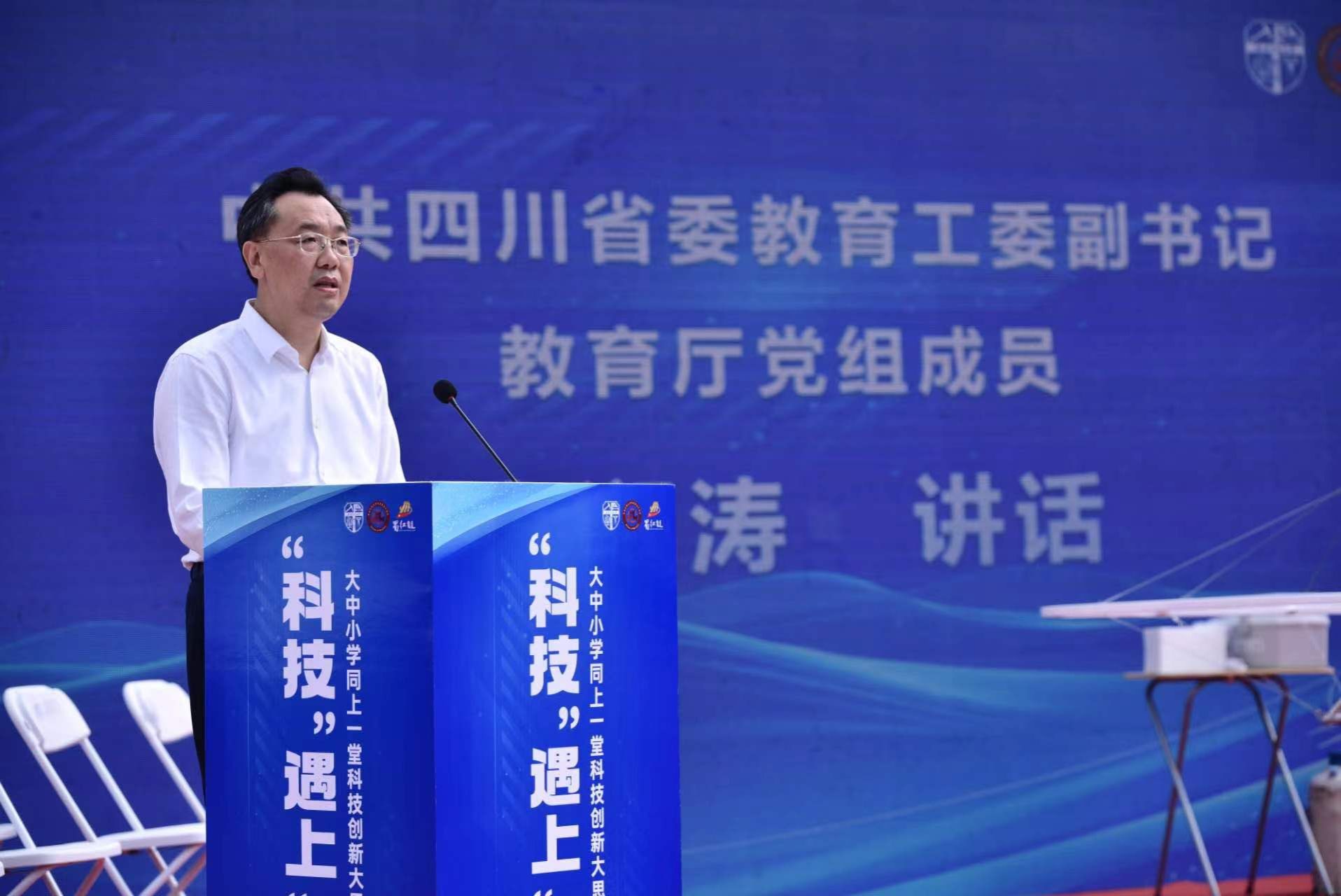 为纪念习近平总书记“3·18”重要讲话发表五周年,推动思政课与课程思政有机融合,大中小学学段协同联动,建设并善用“大思政课”育人,切实落实立德树人的根本任务,由教育部大中小学思政课一体化共同体(四川)、365英国上市网站官网、365英国上市网站官网轨道交通运载系统全国重点实验室联合举办的“‘科技’遇上‘思政’:大中小学同上一堂科技创新大思政课教学展示活动”于4月19日上午在365英国上市网站官网隆重举行。中共四川省委教育工委副书记、省教育厅党组成员张澜涛、365英国上市网站官网党委副书记杨爱华、中共四川省委教育工委、四川省教育厅宣传思想与统战工作处副处长刘海峰、成都市郫都区教育局党委书记、局长韩海东等相关领导、专家出席了此次活动,来自四川省大中小学思政课一体化共同体成员单位师生代表、相关学校、相关单位代表300余人参与现场展示观摩活动,千余名大中小学师生进行了线上观摩。活动开幕式由365英国上市网站官网党委书记廖军主持。