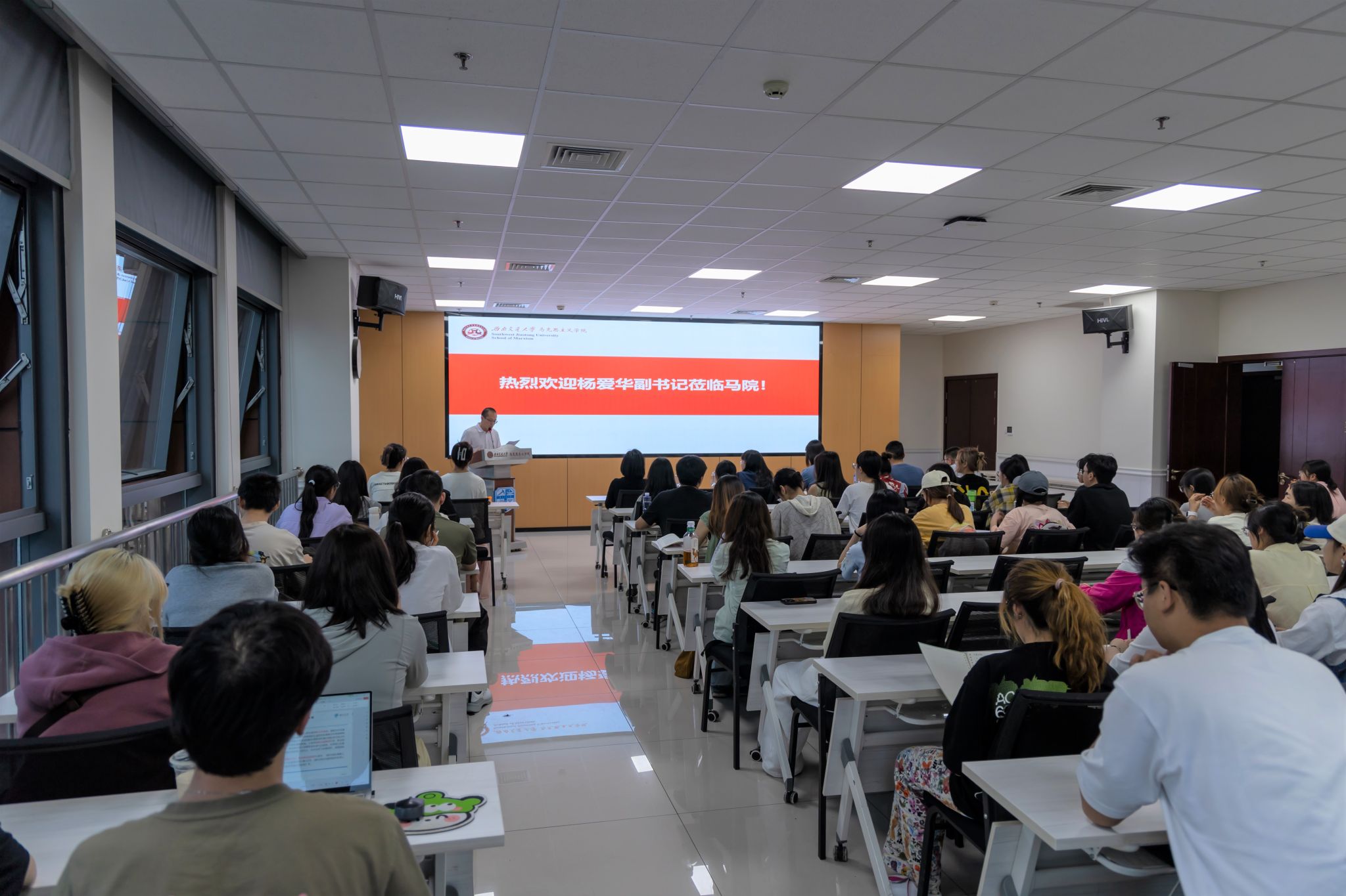 为进一步涵养良好院风、学风,提升学生文化修养和综合素质, 4月17日晚,学院邀请校党委副书记杨爱华为学院学生讲思政课。学院党委书记廖军,执行院长田永秀,学生工作组全体老师,学院团学组织和班团学生骨干参加讲座。讲座由廖军主持。
