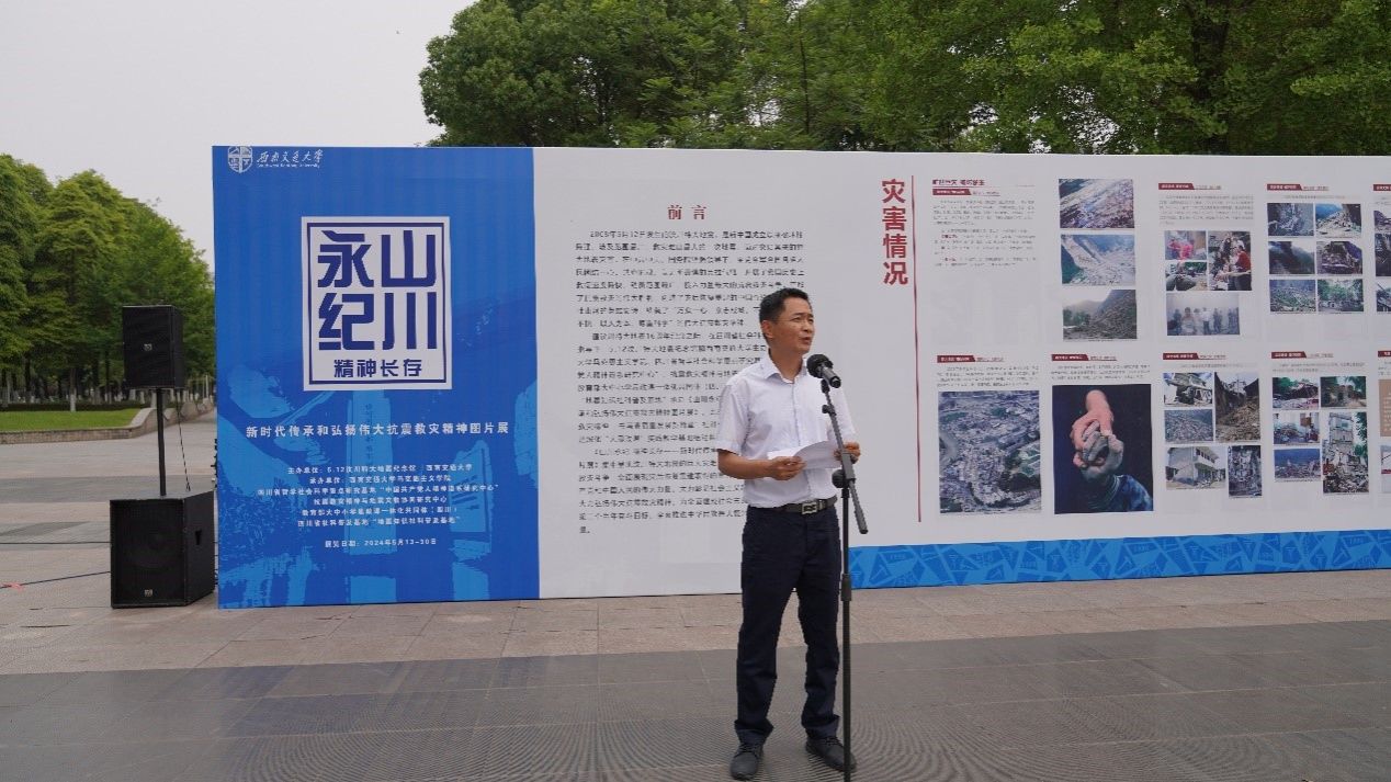 最后,田永秀总结指出,在全国上下学习贯彻“习近平对学校思政课建设作出重要指示”之际,根据《教育部办公厅关于组织高校与大思政课实践教学基地结对行动的通知》精神和要求,在四川省社会科学界联合会的指导下,我们同5.12汶川特大地震纪念馆共同举办“新时代传承和弘扬伟大抗震救灾精神图片展”,把纪念馆的优质精品资源引进校园,将汶川特大地震抗震救灾和灾后重建的举世瞩目成就作为我们思政大课堂的内容支撑,将其熔铸形成的伟大抗震救灾精神作为我们思政大课堂的力量根基,将会进一步提升思政课的针对性和吸引力。