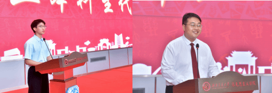 毕业本科生代表何庆果同学和毕业研究生代表李祥瑞同学上台发言,他们分享了在读期间的心声、经历和感悟。何庆果和李祥瑞向学院、老师和同学们表达了感激之情。感谢学院提供的优质教学资源和学术氛围,感谢老师们的辛勤付出和无私奉献。同时,他们也向同学们送上了最真挚的祝福,希望大家在未来的道路上能够一帆风顺、前程似锦。