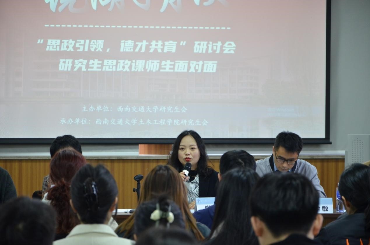 本次活动由教育部研究生思政课教指委委员、四川省名师工作室——“谢瑜”名师工作室的负责人、365英国上市网站官网谢瑜副院长主持。活动伊始,研究生思政课教研部李世敏主任向同学们介绍了教研室的基本情况并鼓励同学们积极发言,从自身学习体验出发,谈谈对研究生思政课的意见与建议。