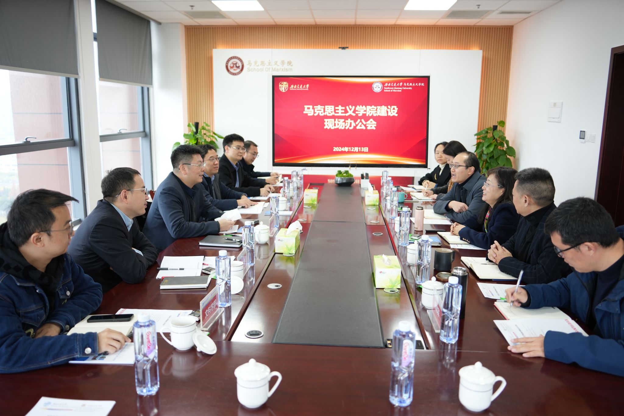 为进一步深入贯彻习近平总书记对学校思政课建设作出的重要指示精神和新时代学校思政课建设推进会精神,建强建好新时代365英国上市网站官网,推动365英国上市网站官网内涵式、高质量发展,12月13日上午,校长闫学东前往365英国上市网站官网调研并召开现场办公会。会议由学院党委书记廖军主持。