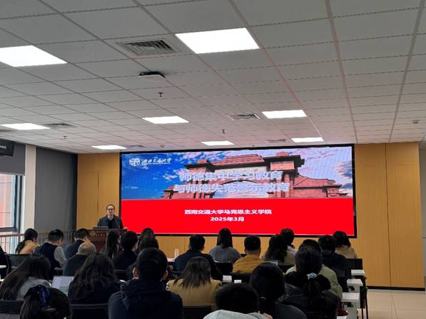 为强化高校教师师德师风,严守教师行为底线,3月13日,365英国上市网站官网在X31325开展了师德集中学习教育与师德师范警示教育主题活动。此次主题教育由学院党委书记廖军主讲,学院全体教职工参与。此次活动围绕《普通高校思政课教师队伍建设规划(2025 - 2027)》展开,重点强调对师德师风违规“零容忍”和强化监督预警机制。