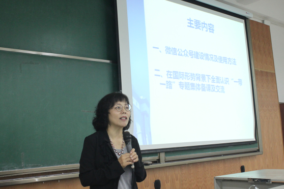 会上,何薇主任首先对微信公众号《西南交大形势与政策课程教学平台》的建设情况及使用方法进行了详细介绍。她指出,教研室搭建微信公众号平台的想法酝酿了一个学期,目的主要是要引导学生进行专题拓展学习,不仅有利于师生进行线上交流与互动,同时可以实现教师对学生线上学习的服务与管理。在新学期专题讲授全面展开之际,微信教学平台终于跟师生们见面,这是教研室全体成员不懈努力、团队合作的结果。何薇表示,这一教学平台在省内乃至全国都处于领先地位,希望大家用好这个平台。