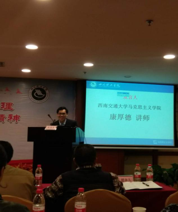 为了深入贯彻落实“十九大”精神及全国高校思想政治工作会议精神,落实教育部“高校思想政治理论课教学质量年”工作部署,全面提升四川高校“马克思主义基本原理概论”课程教学质量,11月11日至12日,由四川省高校马克思主义基本原理概论课教学研究会主办,四川理工学院365英国上市网站官网、中国化马克思主义与传统文化研究中心承办的“原理”学会2017年年会在四川理工学院自贡校区召开。我校马克主义学院基本原理教研室康厚德老师参加了此次会议,并在大会作出了题为“十九大精神融入‘原理’课堂的几点思考”的发言。