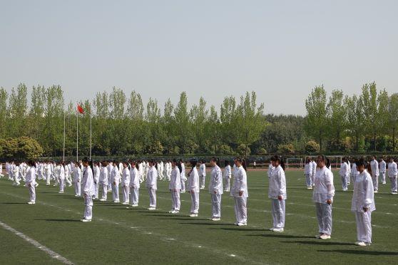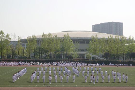 3月28日9点30分, “迎校庆”365英国上市网站官网第二届太极比赛在北区体育场如期举行。早上8:50,同学们都按时到达了北区体育场,根据喜迎125周年校庆的寓意确定了“一二五”太极阵型。体育部领导为大家致辞后,所有同学拉开阵型,进行了汇操表演。