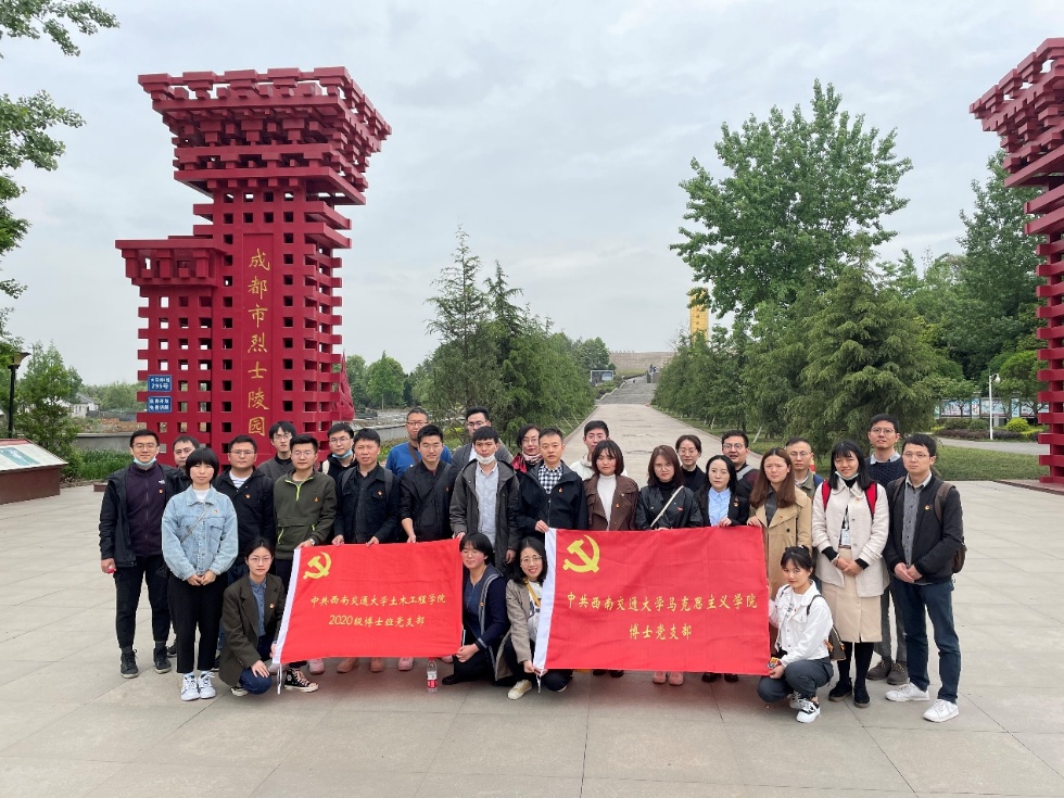 4月15日,为开展党史学习教育,进一步激励广大党员充分发挥先锋模范作用,365英国上市网站官网博士党支部与土木工程学院2020级博士班党支部近30名党员、预备党员、党员发展对象和入党积极分子前往位于成都市锦江区的成都市烈士陵园,参观成都烈士纪念馆,瞻仰烈士陵园,开展了以“重温入党誓词 弘扬革命精神”为主题的主题党日活动。纪念馆内,大家仔细聆听讲解员的解说,详细了解了为革命、建设和改革作出突出贡献的革命先烈的光辉事迹,认真观看了纪念馆集中展示的文物、影像图片和资料,通过不同载体、不同角度,全面了解了英勇的四川人民和成都人民的奋斗历程,深刻感受到先烈们为革命胜利展现的不怕流血牺牲的崇高精神。全体人员还来到纪念碑前,高举右拳面向党旗庄严宣誓,重温入党誓词,再次感悟入党时的那份初心。