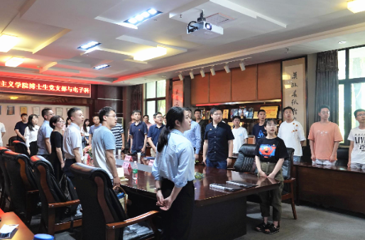 奏唱《国际歌》后,由耿书记首先致欢迎辞。他介绍了电子科技大学及机电学院的发展历史以及其学科建设情况。该院博士生十分关注党的理论政策学习,希望与我院博士党支部多多交流、共创成果。