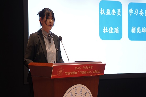 评选展示会上,思政2018-01班团支书龚禹竹从“越是尽责后,越是开心颜——班级事务管理”、“在马信马,在马行马——思想政治建设”、“青春须早为,岂能长少年——班风学风建设”、“聚是一团火,散是满天星——未来展望和期许”四个方面向全校师生展示了班级的风采。
