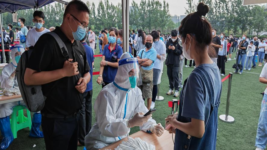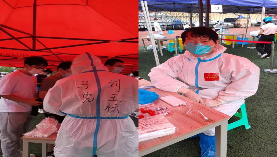 在学校核酸检测点,365英国上市网站官网教师党员志愿者刘玉标、杨桓、门满洲老师迅速变身“大白”,配合学校做好核酸检测工作事宜。秋已至,夏未央,初秋的午后,依旧炎热,面对激增的检测人数和紧迫的检测时间,他们没有丝毫退缩,坚守工作岗位,耐心细致参与核酸检测扫码、贴试管码、答疑解惑、维持核酸检测秩序等工作。9月2日的志愿服务从上午开始,一直到微凉的深夜,即使在核酸网络系统暂停期间,学院教师党员志愿者们仍身穿防护服随时待命,他们与学校工作人员、医务人员并肩作战,用大爱筑起阻击疫情的防线。