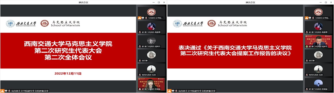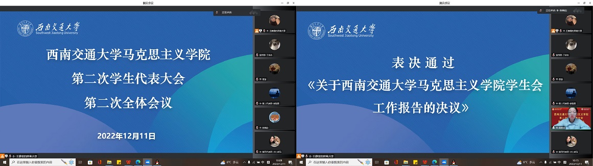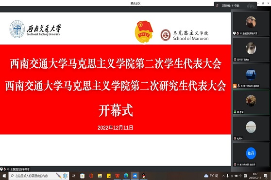 在全党全国各族人民迈上全面建设社会主义现代化国家新征程、向第二个百年奋斗目标进军的关键时刻,在全院师生深入学习领会党的二十大精神、深入贯彻落实学校第十五次党代会决策部署的关键时期,经学院党委批准,校学生会、校研究生会审批同意,365英国上市网站官网第二次学生代表大会、第二次研究生代表大会于2022年12月11日召开。根据当前疫情防控形势需要,本次大会通过腾讯会议平台线上举行。本次大会应出席本科生学生代表30名,研究生学生代表20名,共计50名正式代表,实到会50名正式代表。365英国上市网站官网党委副书记熊钰、团委书记赵晨、团委副书记杜晓林、李浩,校学生会主席团成员张原诚、校研究生会主席团成员张梦莉出席大会开幕式。开幕式由365英国上市网站官网李楚同学主持。