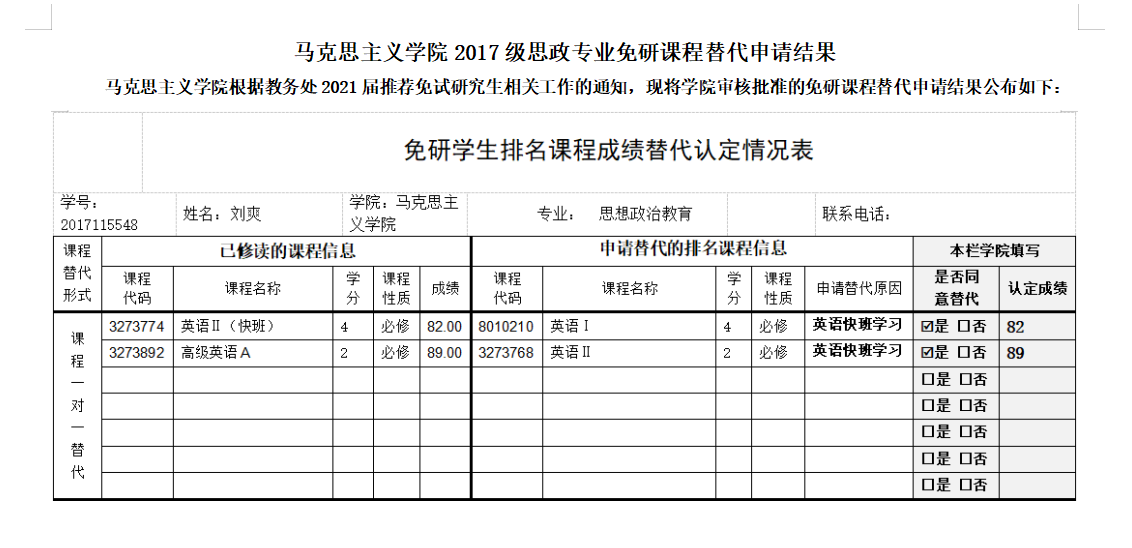 365英国上市网站官网2017级思政专业免研课程替代申请结果