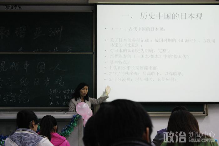 11月24日晚上7:30在教室X2422举办了“和谐亚洲”系列讲座——现代中国人的日本观。本次活动由学生处主办、政治学院分团委承办,主讲人为政治学院副教授田雪梅老师。本次讲座是从以下四个部分分析现代中国人的日本观念的发展过程:一、历史中国的日本观;二、现代中国人的日本认识;三、形成误区的原因分析;四、走出误区。