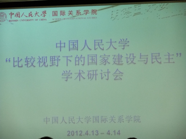 2012年4月13-14日,我院政治学系田雪梅老师参加了中国人民大学国际关系学院政治学系主办的“比较视野下的国家建设与民主”学术研讨会。此次会议是我国政治学界近年来少见的一次高规格会议,参加人数不多,但受邀出席会议的重量级学者多,不仅国内一流大学的知名政治学者出席,还邀请了一批近年来在国内学术界受到广泛关注的海外华人教授,如美国芝加哥大学赵鼎新教授和杨大力教授、丹佛大学赵穗生教授,加州大学洛杉矶分校王国斌教授,英国诺丁汉大学王正绪教授,台湾政治大学寇健文教授和王信贤教授等人。会议参与者不仅有政治学者,还有哲学、社会学、历史学、管理学等学者。与会代表围绕“现代国家的性质”、“中国模式”、“民主”、“社会转型与国家治理”、“制度选择与社会治理”、“现代国家形成的路径与挑战”等六大主题展开热烈讨论,引发场内外观众的热烈互动。我院田雪梅老师是此次应邀出席会议代表中唯一的女性学者,她在会议上作了“自由民权运动与近代日本国民的铸造”的主题发言,并指出了目前“现代国家”研究的诸多理论困惑。田雪梅老师还就会议主题和与会代表展开了广泛的交流和研讨。