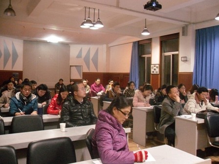 (记者 王娜 摄影 报道)为了纪念《中华人民共和国宪法》颁布30周年、贯彻落实十八大会议精神,12月12日晚7点30,我校兼职教授、四川省人大常委会委员、四川省人大内务司法委员会副主任、一级高级法官文敬教授在电气馆3439法律硕士专用教室,为大家奉献了一场精彩的学术盛宴——中国宪政法制的改革期许。政治学院副院长许义文教授、法学系主任邓大鸣教授、法律硕士教育中心副主任邓君韬副教授、徐兴祥副教授、张晶老师和政治学院研究生们,以及公共管理学院博士生导师肖平教授、政治学院部分退休教职工等参加了学术讲座,讲座由邓大鸣教授主持。
