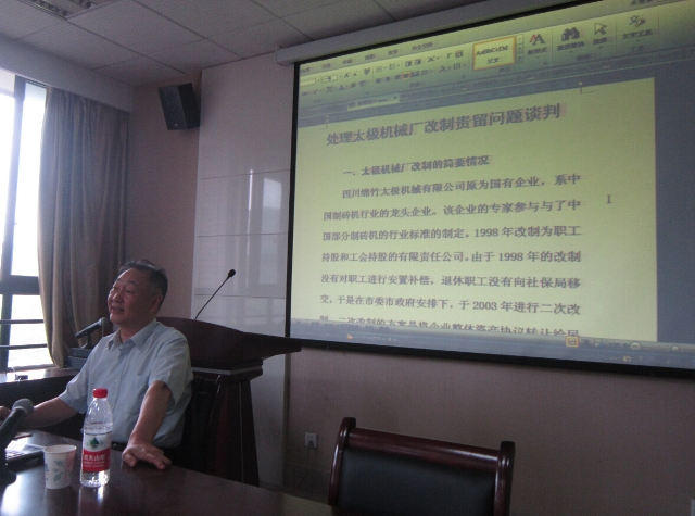 王能春老师律师执业已逾三十年,理论素养丰厚、实践经历丰富,讲座深入浅出、别开生面。他以案说法,整场讲座围绕他亲自经办的两个追讨数亿元国有资产重大案件展开。首先,为了方便大家理解,王律师简述了我国九十年代左右国有企业改制的相关背景知识;然后,他分别从四川太极机械厂改制的简要情况、争议发生后政府协调无果、聘请律师追收资产、原股东群体上访催生再次谈判、律师引导股东统一认识、律师帮助政府统一认识、律师提出补偿方案最终为双方接受等七个部分向我们展示了处理太极机械厂改制遗留问题的谈判过程。接着,他以查清事实、通过谈判达到追收流失的国有资产之目的、政府批复完善国有资产出售手续等三个方面讲述了代理天全县追收长河公司流失国有资产谈判的整个过程。王律师对这两件法律谈判案例的讲解全面、细致,其间穿插展示了法律意见书、补偿协议书、审计报告、政府批复等珍贵的办案材料,并对其中的关键知识点进行了补充讲解。