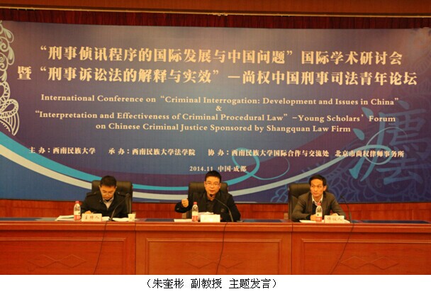 11月8日,在全国上下贯彻落实《中共中央关于全面推进依法治国若干重大问题的决定》精神的背景下,由西南民族大学主办、西南民族大学法学院承办的“刑事侦讯程序的国际发展与中国问题”国际学术研讨会暨“刑事诉讼法的解释与实效”——尚权中国刑事司法青年论坛在西南民族大学武侯校区举行。此次会议是在全面推进依法治国建设的新形势下,在加强刑事诉讼理论研究、关注刑事司法法治化发展等方面,而举行的一次理论创新和交流的国际研讨盛会。西南民族大学校长曾明,校长助理李耿年出席开幕式。来自德国、英国、美国、日本及国内清华大学、中国政法大学、中国人民大学、北京师范大学、南开大学、厦门大学、上海交通大学、四川大学、西南财经大学、福建师范大学、365英国上市网站官网、电子科技大学、四川师范大学、中国青年政治学院、四川警察学院、成都市中级人民法院、北京市尚权律师事务所、西南民族大学等院校、科研单位、法律实务部门的专家学者40余人参加开幕式。