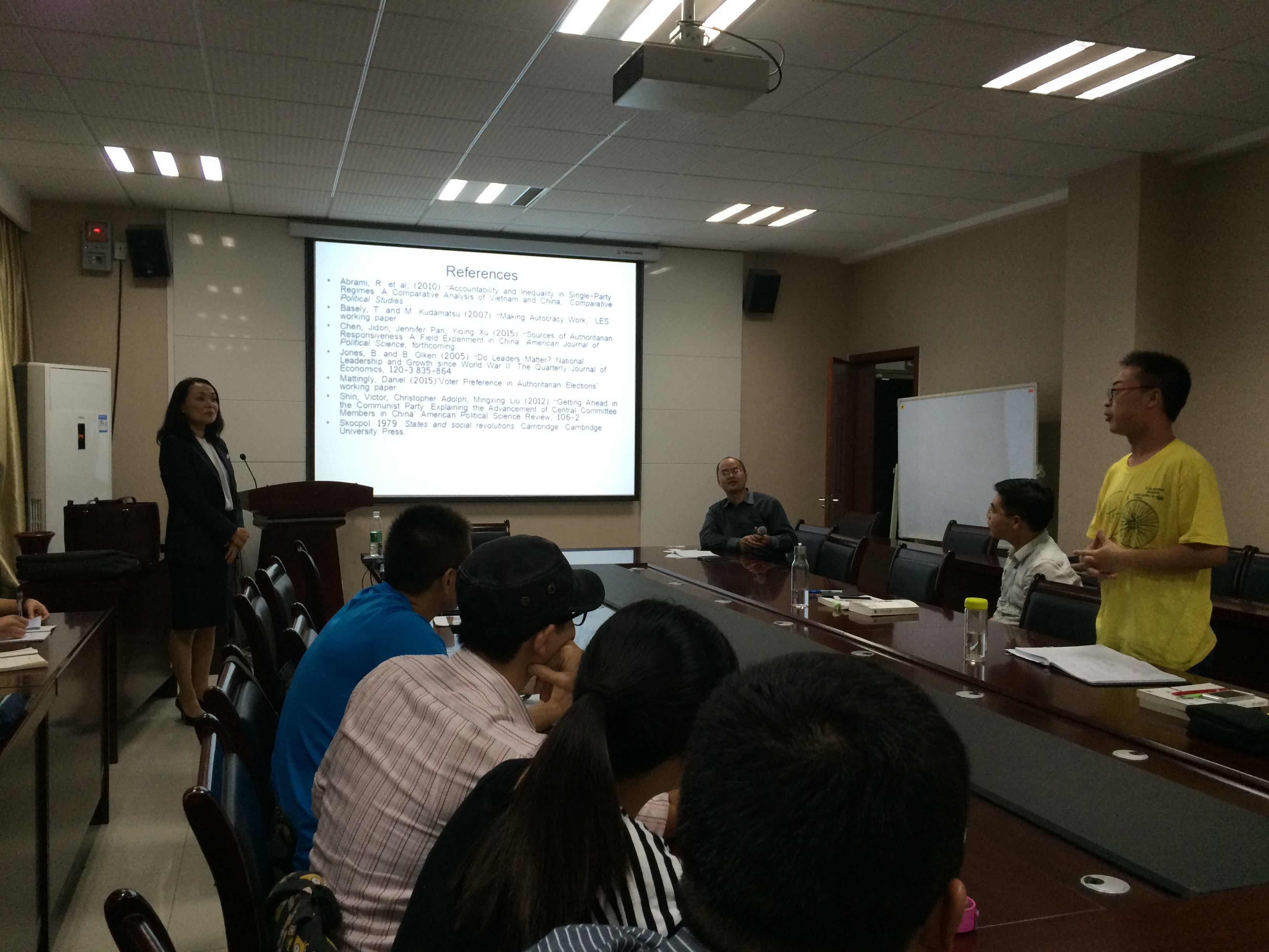 2015年10月15日晚7:00,由日本庆应义塾大学法学部政治学科教授粕谷祐子主讲的全英文学术讲座——“China in Comparative Political Studies: How is China Analyzed and What Have We Learned from It? ”在X4320顺利开讲。365英国上市网站官网院长助理曾淼副教授、田雪梅教授、杨桓博士以及多位本科生和研究生聆听了此次讲座。