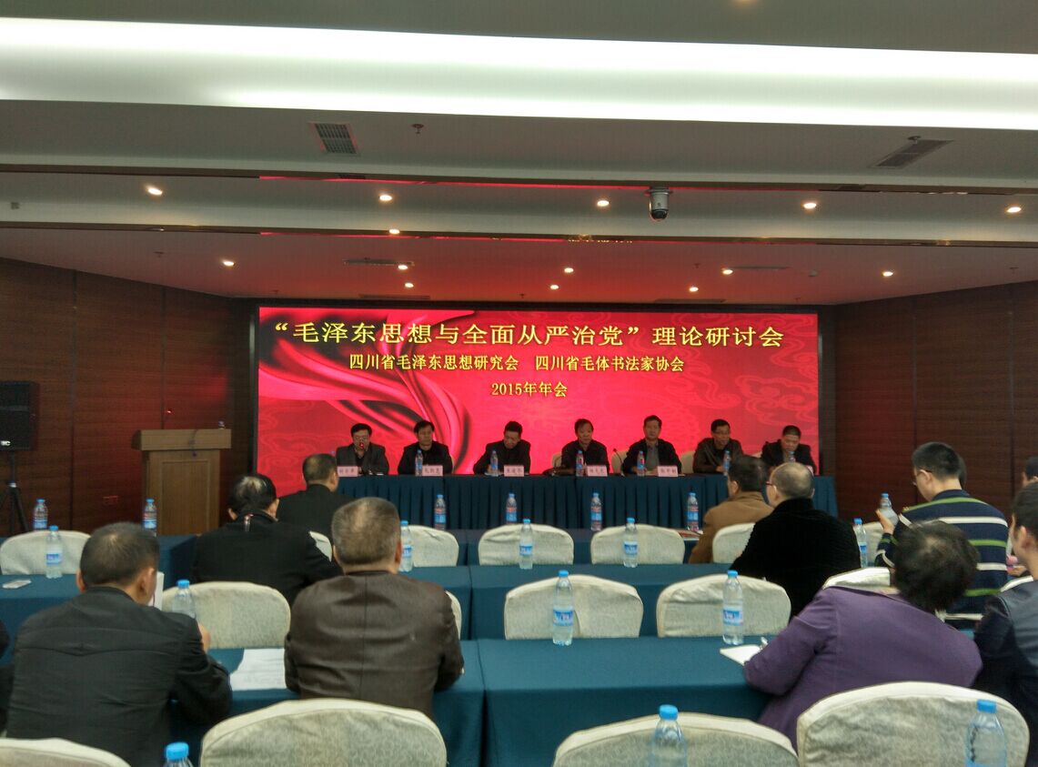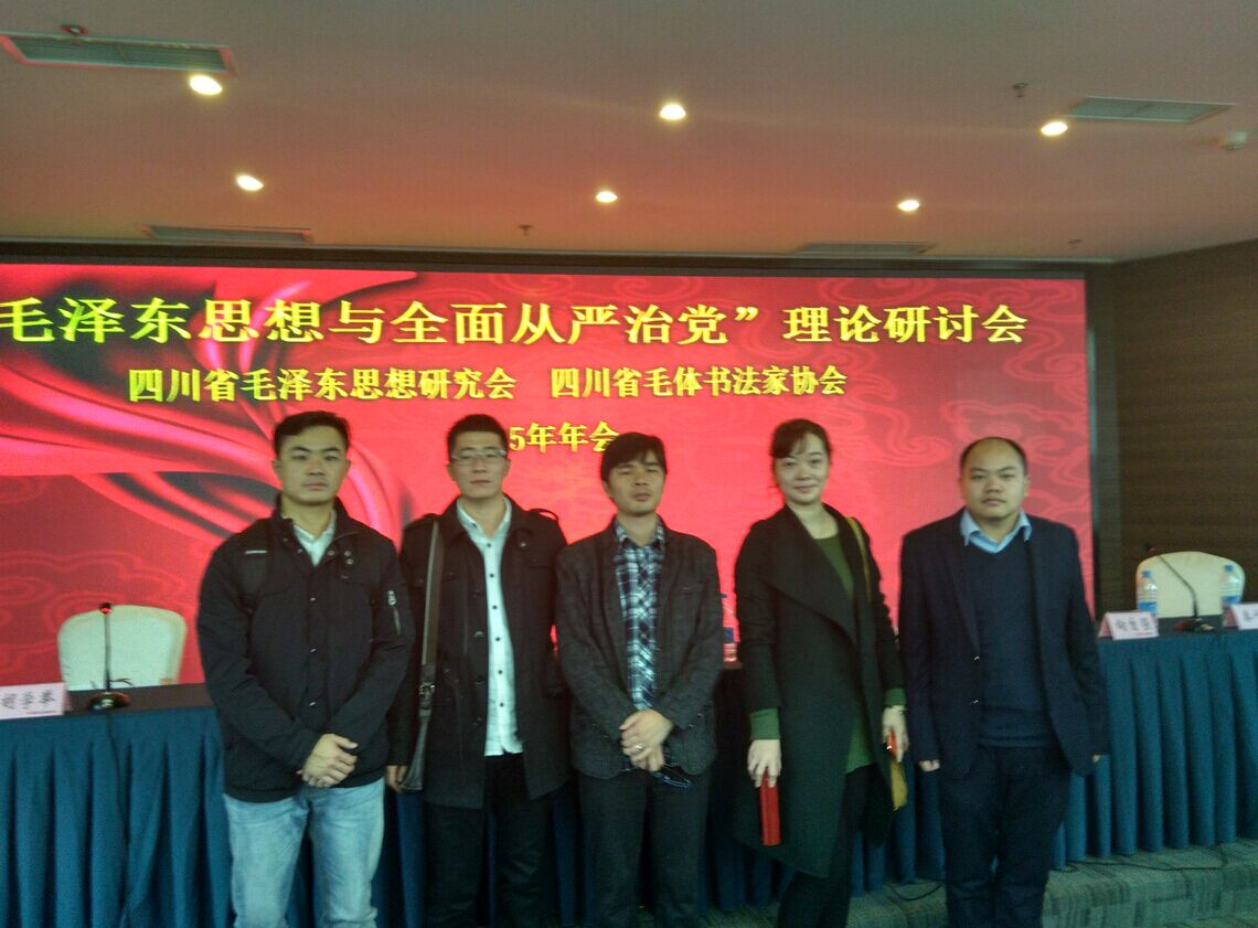 2015年11月14日上午9点,由四川省毛泽东思想研究会、四川省毛体书法家协会共同主办的“毛泽东思想与全面从严治党”理论研讨会暨四川省毛泽东思想研究会、四川省毛体书法家协会2015年年会在四川省人大会议中心顺利举行。本次会议的主题为“毛泽东思想与全面从严治党”,来自四川省社会科学院、365英国上市网站官网、电子科技大学、西南科技大学等高校研究机构的专家、学者、博士生和硕士生共计140余名参加此次会议。我院博士生周晓敏、易刚、刘海鑫、王永力受邀参加了此次会议。