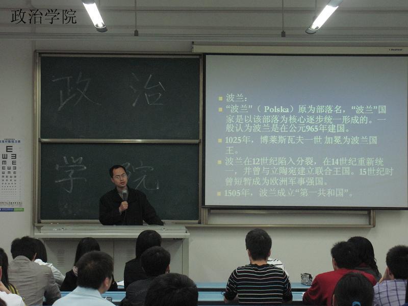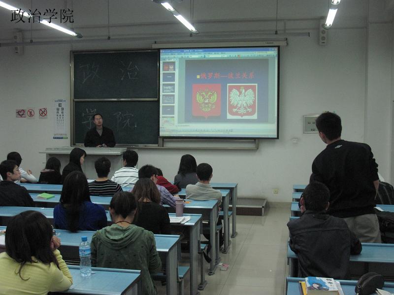 离讲座开始还有半个小时的时候,教室里已经座无虚席。曾老师在同学们热烈的掌声中走上了讲堂,从五个方面剖析了俄罗斯与波兰两国之间的历史关系以及未来发展的可能性。