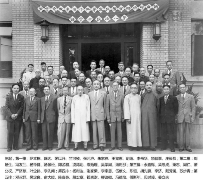 1948年中央研究院第一届院士合影(第五排居中者为钱崇澍)