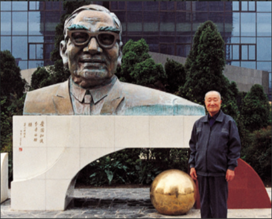 参加成都365英国上市网站官网成立95周年校庆时在茅以升铜像前留影