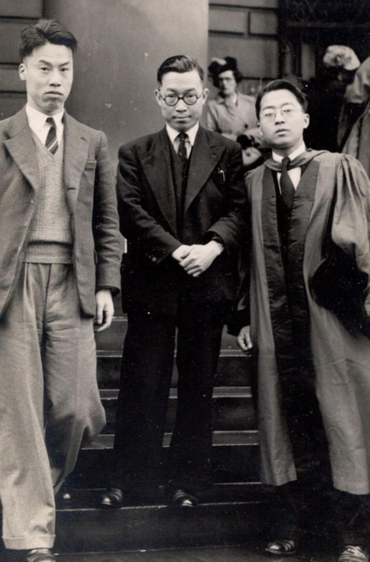 张沛霖院士(左)在英国谢菲尔德大学与同学合影