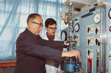 卢肇钧在实验室做三轴试验